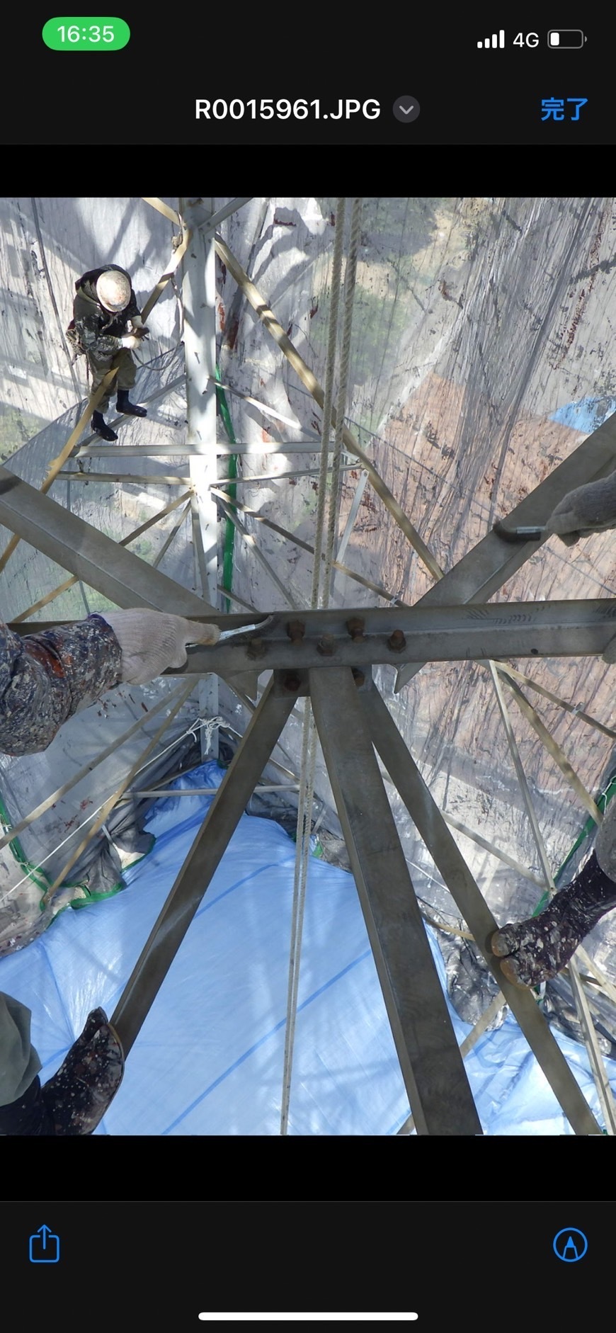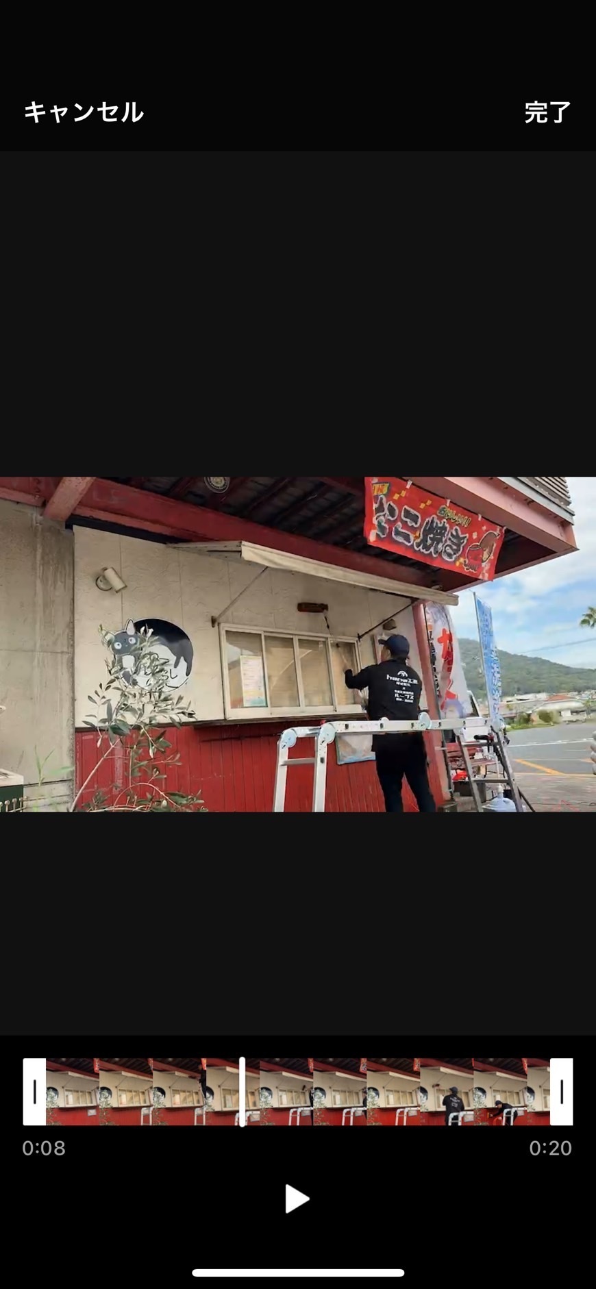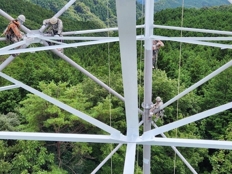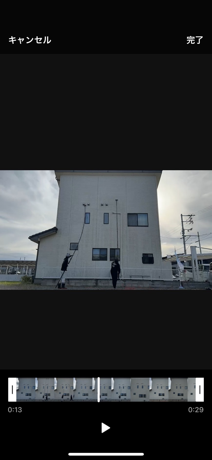 足場を使用せず、高所には伸縮ポールのブラシを使用することで、